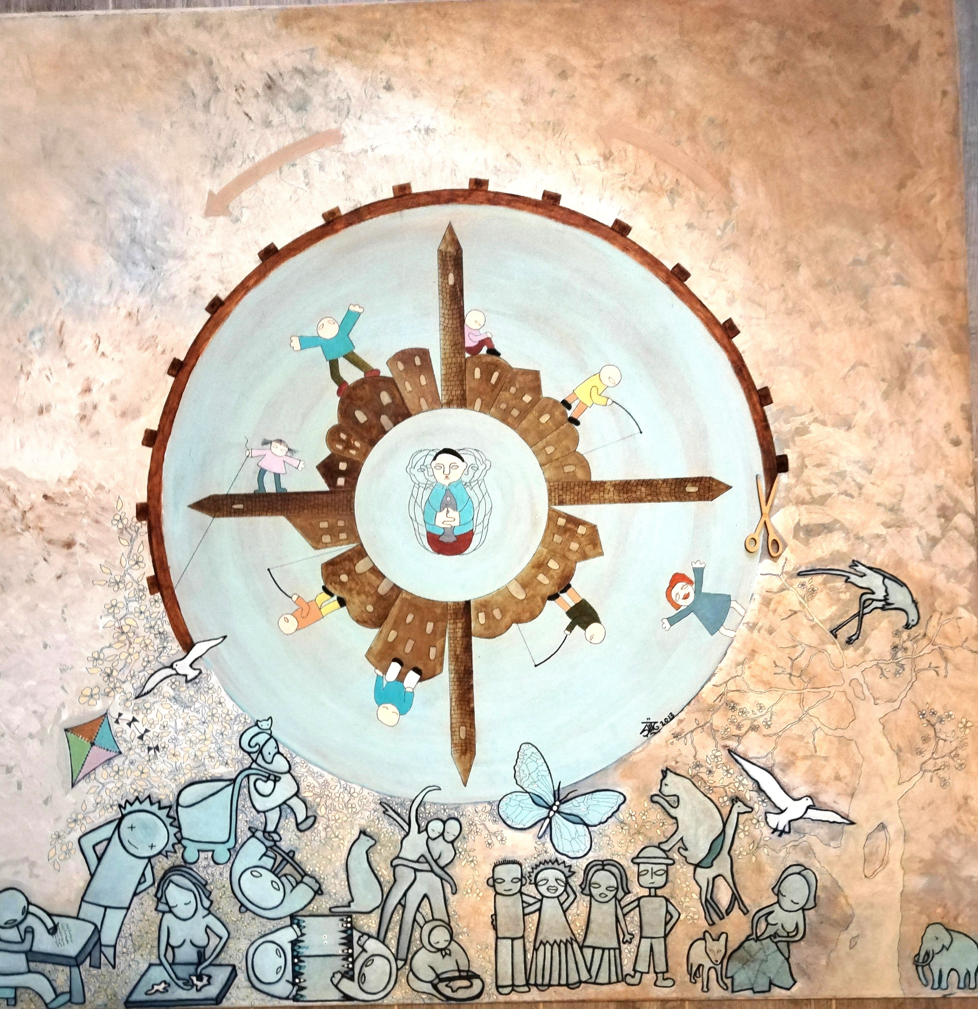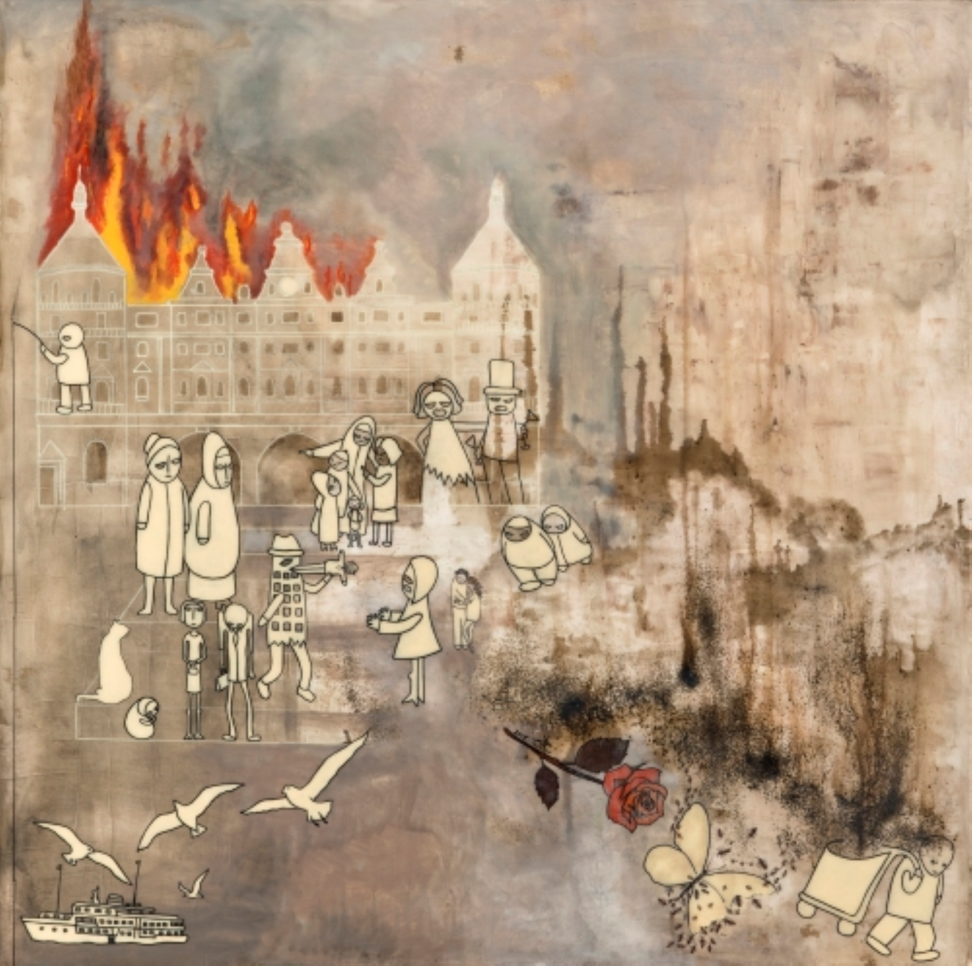 Gifted with a telescopic gaze, borrowed from one of her favourite artists, Pieter Bruegel the Elder, Şiir Özbilge creates a teeming chaos of architecture, characters and allegorical figures, in tragicomic events in which the artist's eye is not exempt from severe criticism of the neoliberal economy of the 21st century.